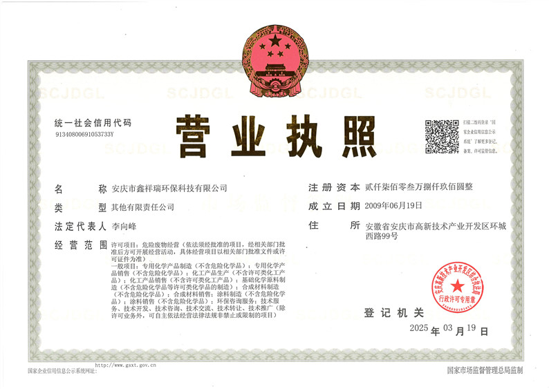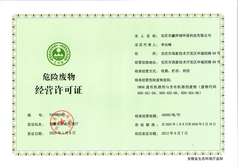 安慶市鑫祥瑞環(huán)保科技有限公司(以下簡稱“鑫祥瑞環(huán)保”)坐落于安慶高新區(qū),成立于2009年,現(xiàn)為安徽京控環(huán)境技術(shù)服務(wù)有限公司旗下控股公司。主要從事廢有機溶劑的資源化綜合利用和濕電子化學(xué)品研發(fā)生產(chǎn)業(yè)務(wù)。