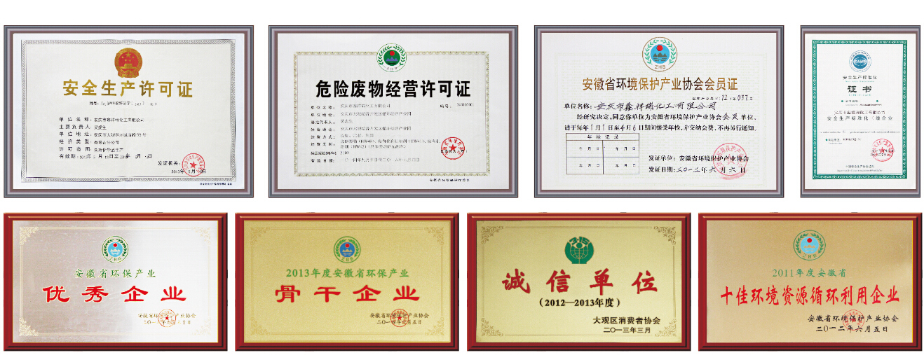 As a leading company in this industry of Anhui Province, our company now owns the business license of hazardous waste for the collection, storage and use of 9,820 t/a of waste organic solvents (HW40, HW06). At the same time, our company also obtain the hazardous waste business license for the collection and storage of 7000 t/a of solid waste (Within Anqing City), that adds more vitalities for the development of our company.