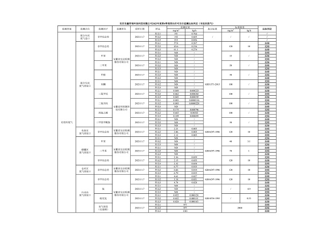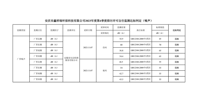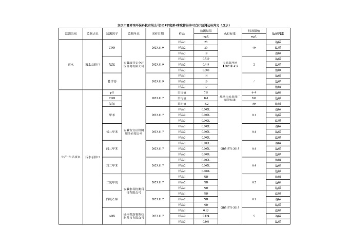 安慶市鑫祥瑞環(huán)??萍加邢薰?023年第4季度排污許可自行監(jiān)測(cè)公開(kāi)