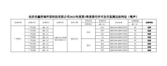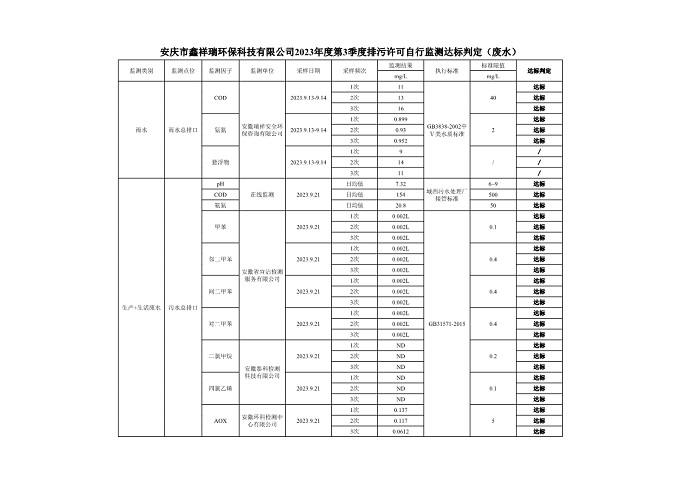 安慶市鑫祥瑞環(huán)保科技有限公司2023年第3季度排污許可自行監(jiān)測公開