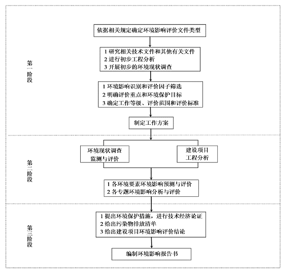 本項目的環(huán)境影響評價程序?qū)础董h(huán)境影響評價技術(shù)導則 總綱》HJ2.1-2016中規(guī)定執(zhí)行,主要工作程序為: